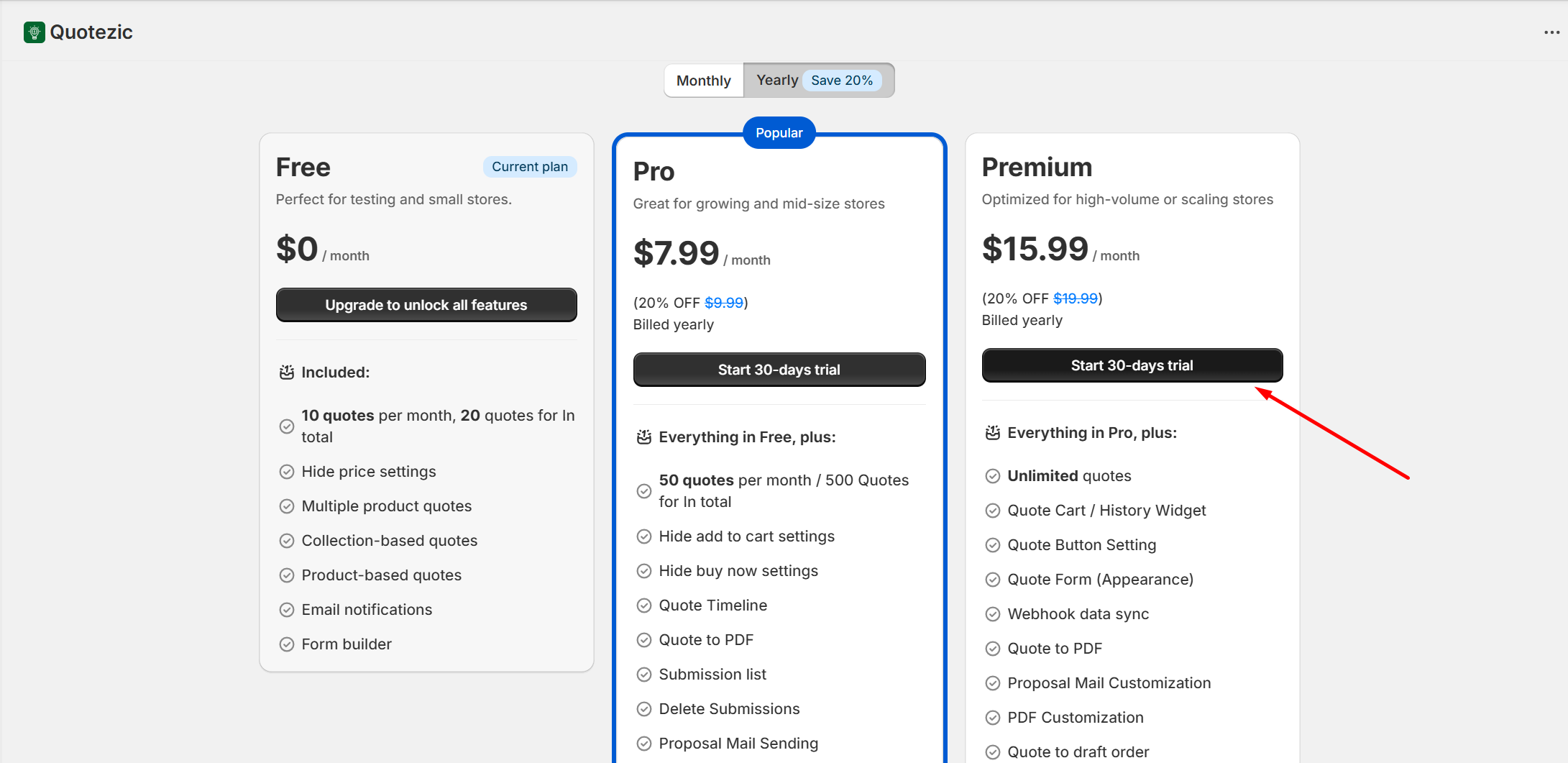 1. Go to Quotezic → Pricing Plan