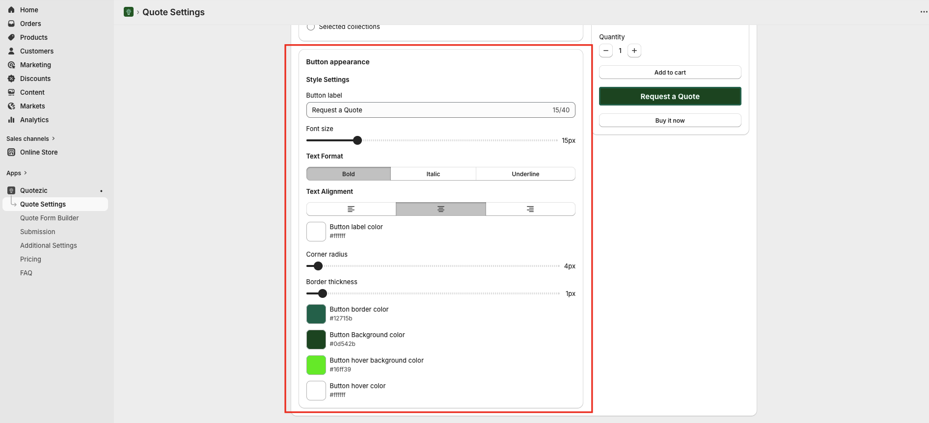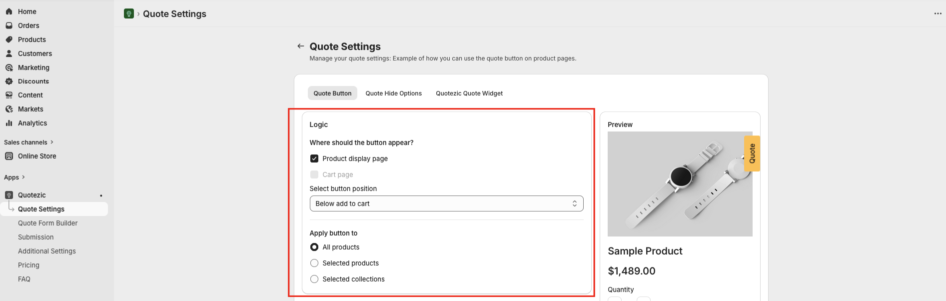 Control where and how the quote button appears.