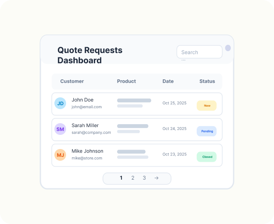 Allow customers to request quotes directly from your store, with each request sent to your dashboard.