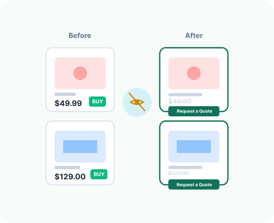 Users can hide prices and cart buttons for selected products or collections as they needed.